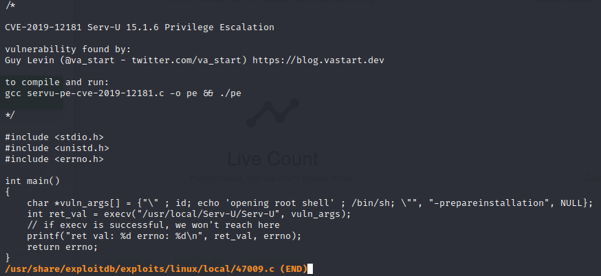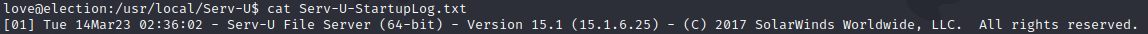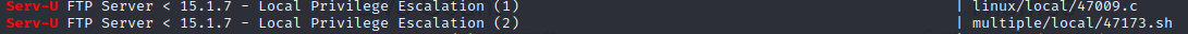 Ran searchsploit serv-u 15.1 and discovered that the currently installed version of Serv-U is vulnerable to a local privilege escalation vulnerability!