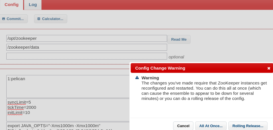 In the top-right of the screenshot of the config tab, we can (partially) see that the version of Exhibitor is v1.0
